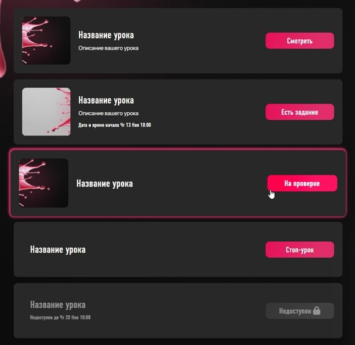 - Стилизация недоступного тренинга. Для корректного показа недоступного тренинга рекомендуем использовать это решение.