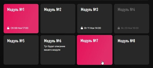 Шаблон оформления списка тренингов с возможностью показать дату открытия модуля