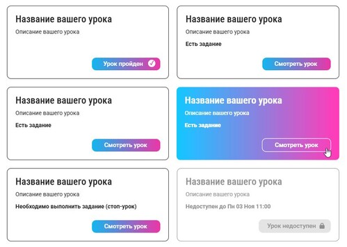 - Подходит любой вариант оформления списка уроков из коллекции (идеально со списком уроков плитками).