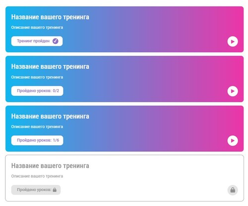 - Автоматическая стилизация недоступного тренинга (когда все уроки тренинга в статусе недоступен)