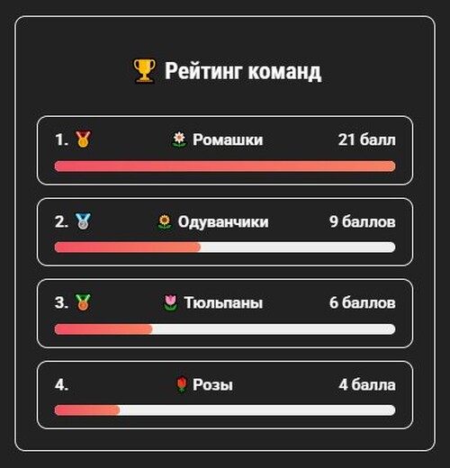 Команды соревнуются между собой, а каждый участник становится важной частью победы.