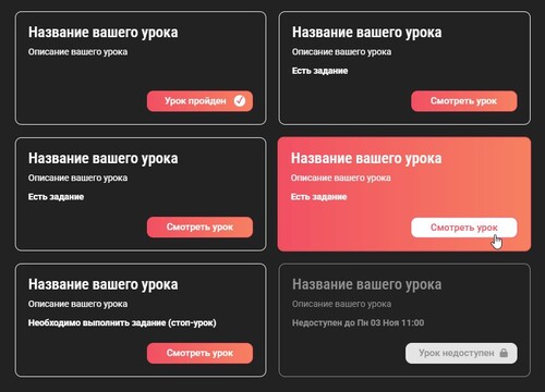 - Подходит любой вариант оформления списка уроков из коллекции (идеально со списком уроков плитками).