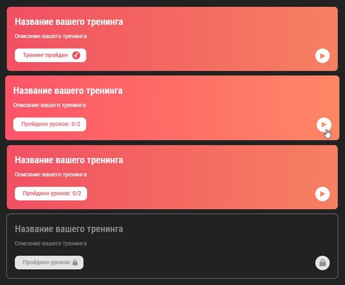 - Автоматическая стилизация недоступного тренинга (когда все уроки тренинга в статусе недоступен)