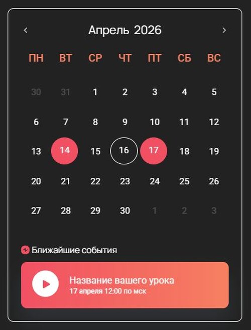- Наглядное и стильное расписания в виде календаря, поможет ученикам не пропускать важные события обучения и станет украшением вашего тренинга.