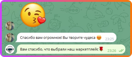 - В момент создания заказа вас переадресует в наш Телеграм-бот;