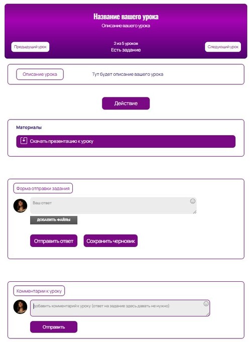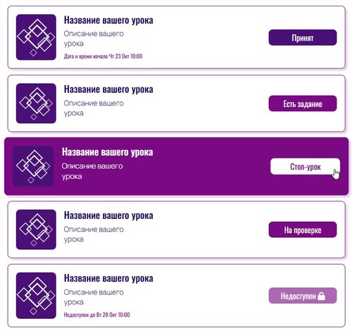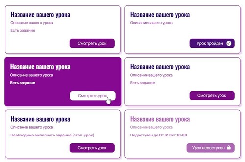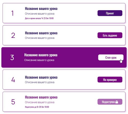 - Подходит любой вариант оформления списка уроков из коллекции (идеально со списком уроков плитками).