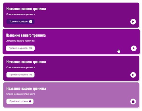 - Стилизация недоступного тренинга. Для корректного показа недоступного тренинга рекомендуем использовать это решение.
