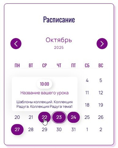 Наглядное и стильное расписания в виде календаря, поможет ученикам не пропускать важные события обучения и станет украшением вашего тренинга.