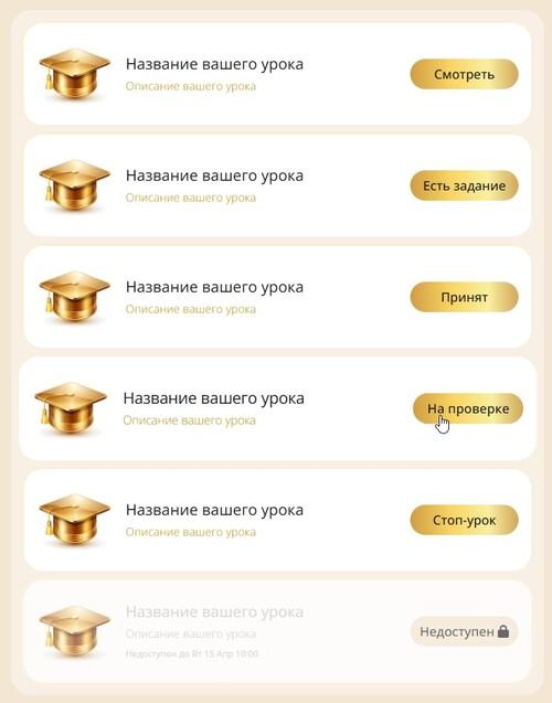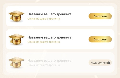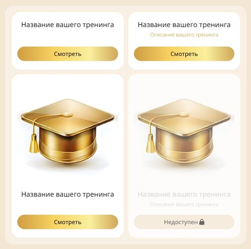 - Стилизация недоступного тренинга. Для корректного показа недоступного тренинга рекомендуем использовать это решение.